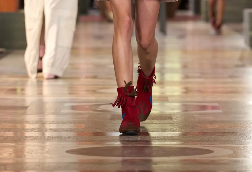 El escenario de la presentación de la colección en la Semana de la Moda fueron los salones palaciegos del Louvre, que el director creativo de Louis Vuitton, Nicolas Ghesquière, describió como un hogar donde era apropiado moverse en cómodas pantuflas.